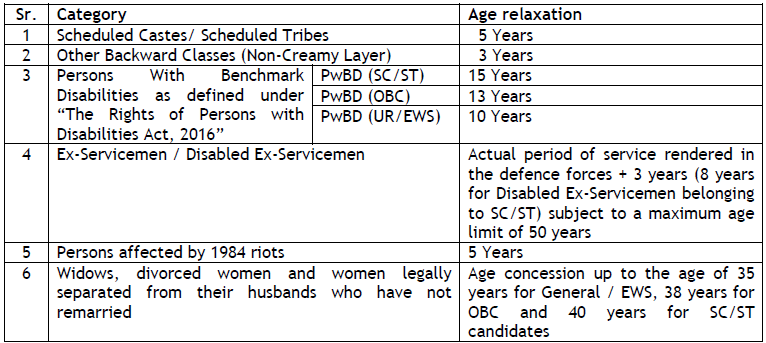 Age Limit: Relaxation in upper age limit